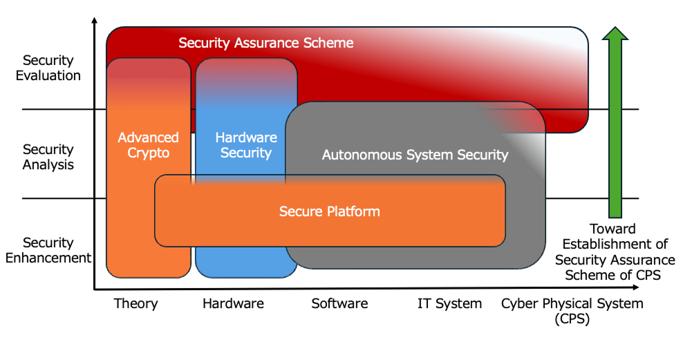 Our research goal is to promote research on security enhancement technologies, evaluation technologies, and security assurance schemes to realize security in a society where cyber/physical space is highly integrated (cyber-physical security), and to contribute to economic development and the realization of solutions to social issues.